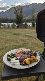 Jonny’s camping company was far more impressive. He sent us off with a car full of camping goodies – a gas bbq, not one, but two tents, salt and pepper, tea towels, washing up liquid! We set off to try camping again. The comparison couldn’t have been more stark. We headed to Moke Lake, set up our camp by the picturesque lake and braiied lamb chops as the sun cast majestic shadows across the valley painting the sparse clouds coral pink.